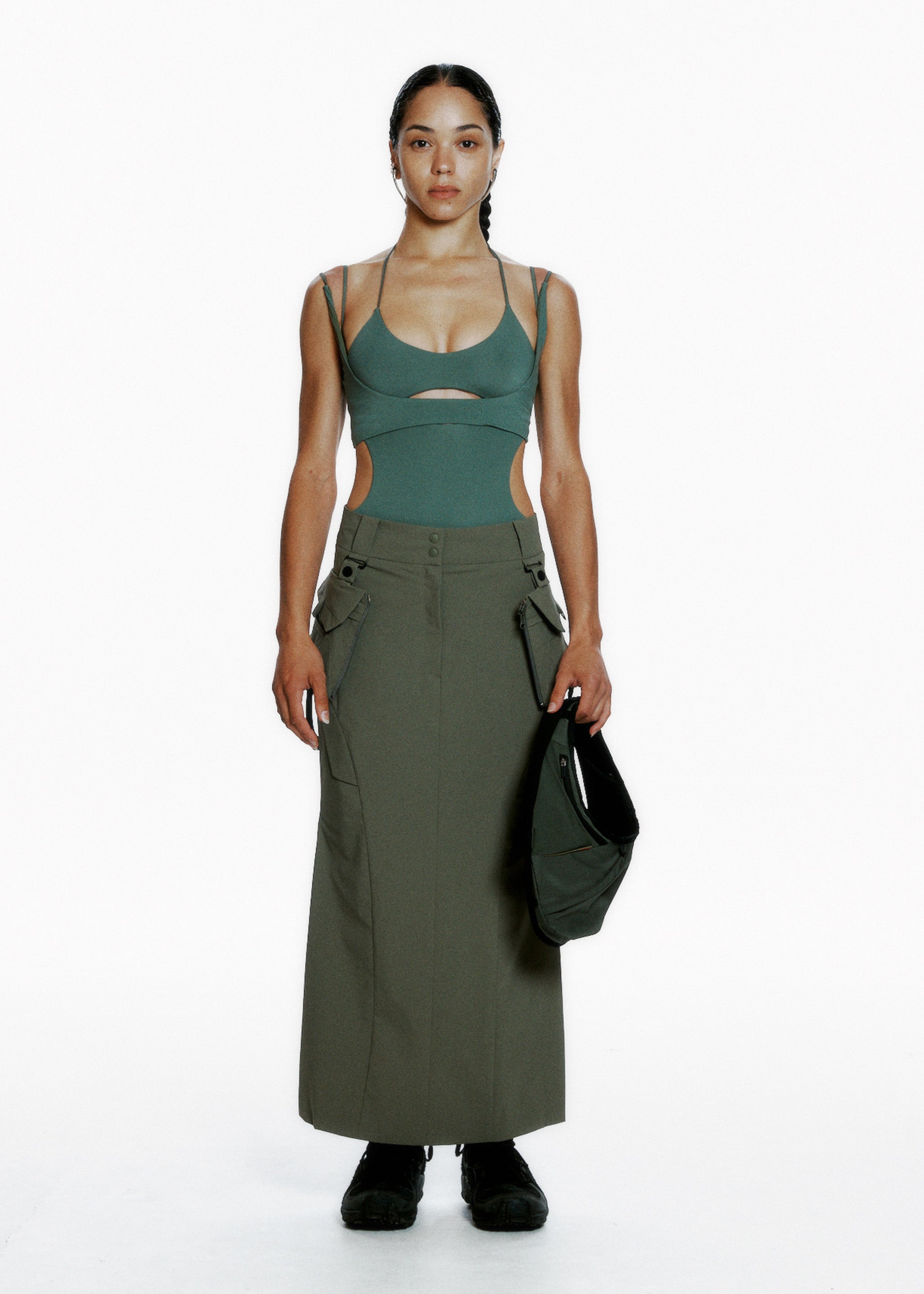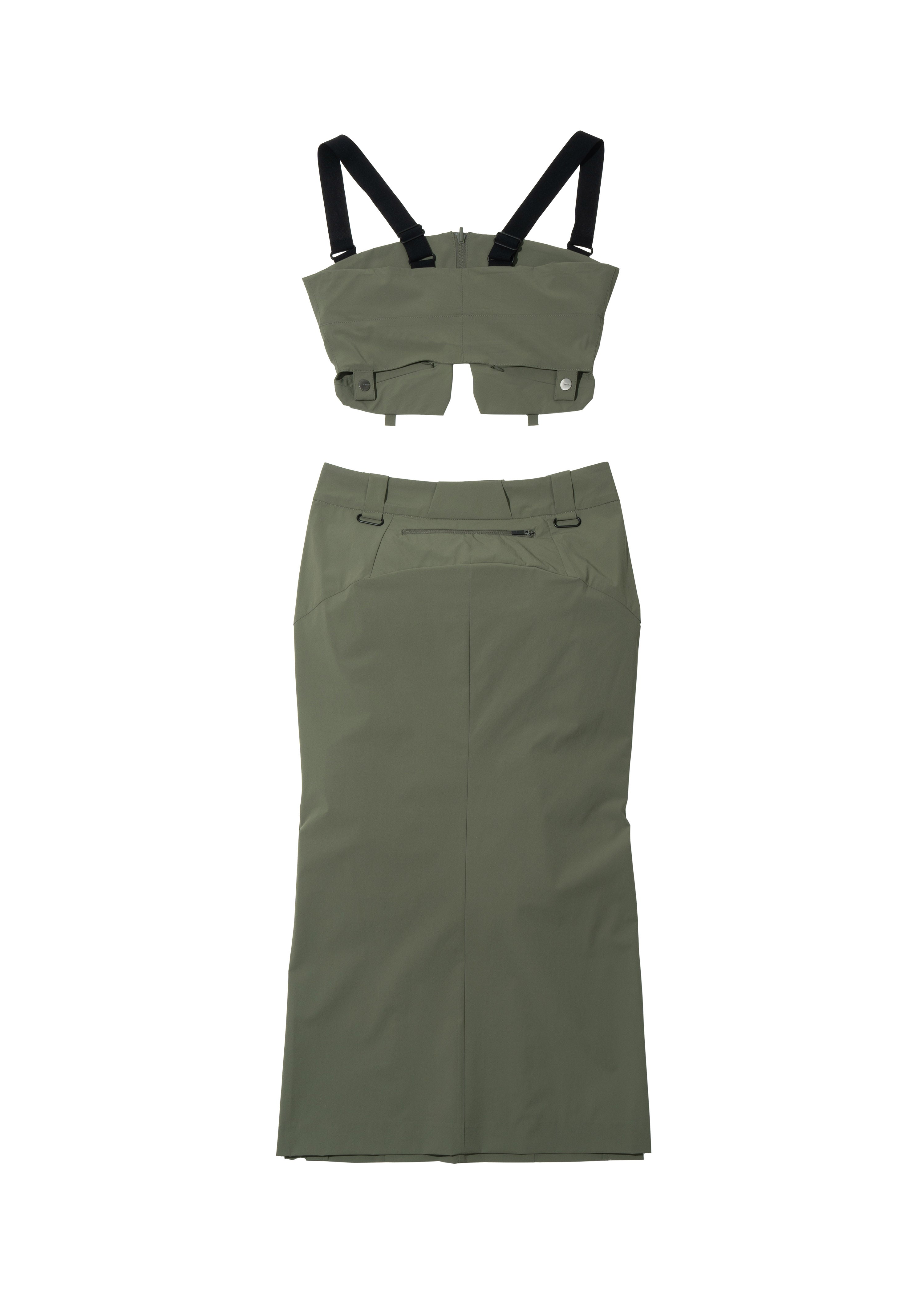Adjustable-detachable corset at waist with snaps,corset can be worn as separate top, zip pocket, slit at side