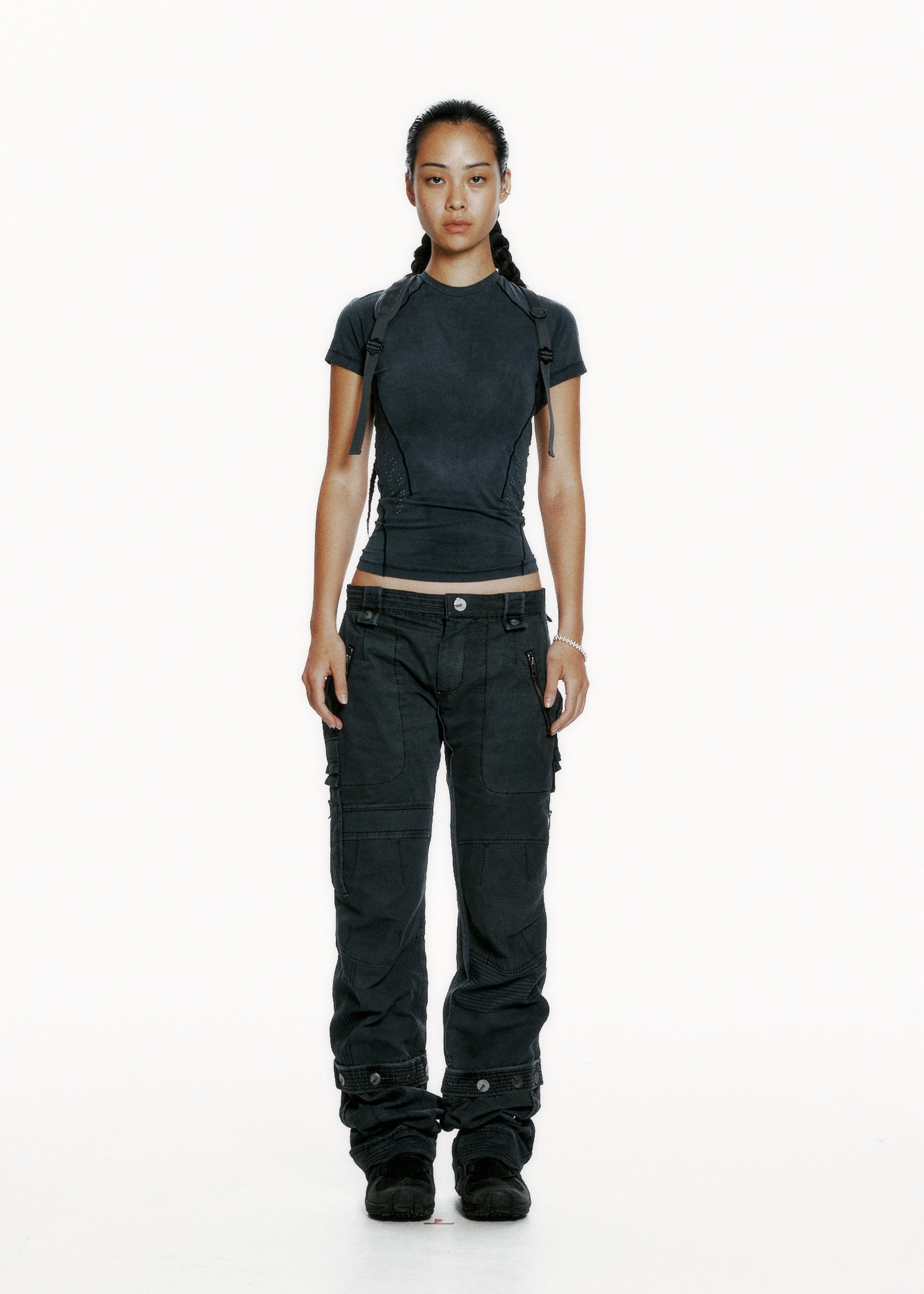 Fitted, pigment dyed, silicon-printed graphic detail throughout, backstrap features adjustable strap and mini zip pocket
