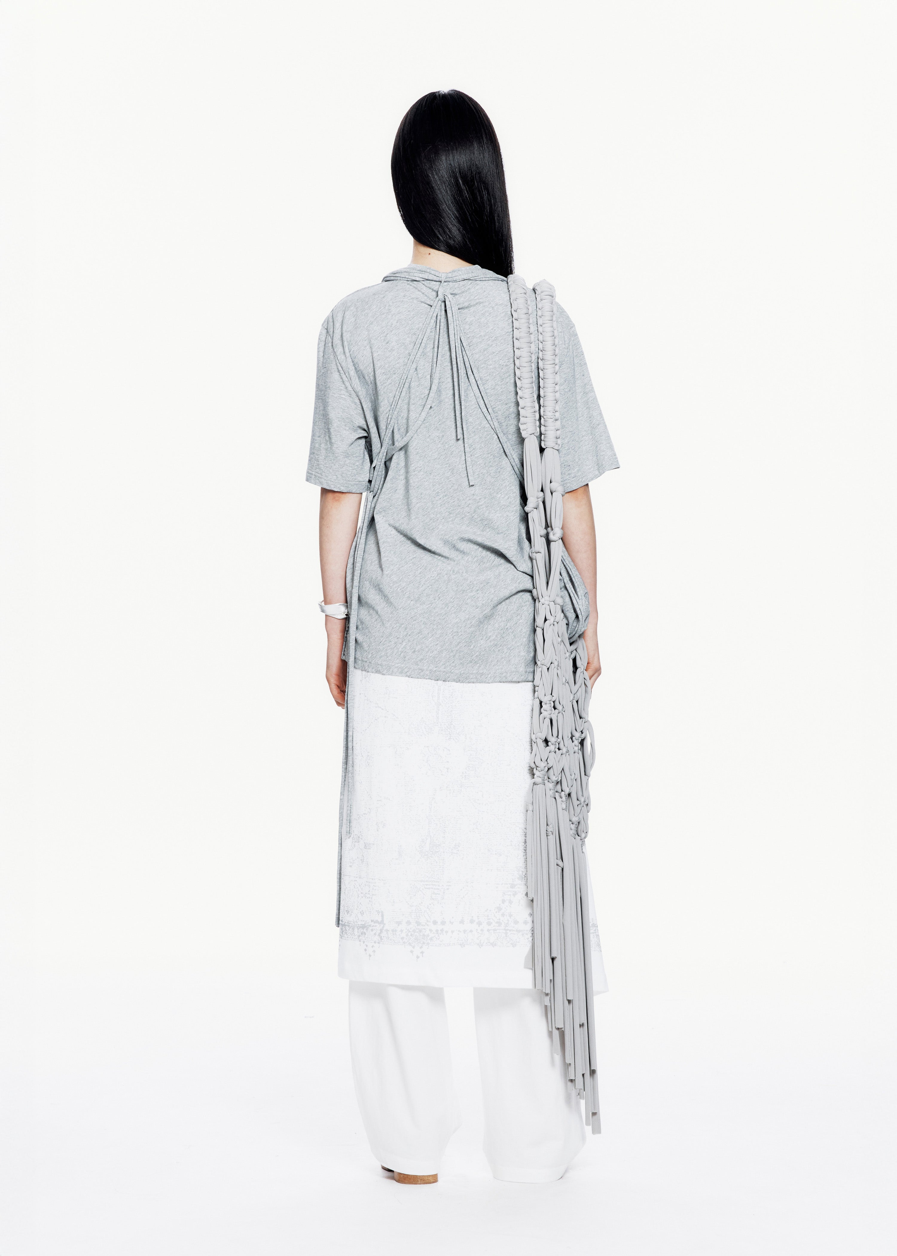 Jersey pants with an elasticated waistband. Comes with a detachable graphic-printed scarf for versatile styling.