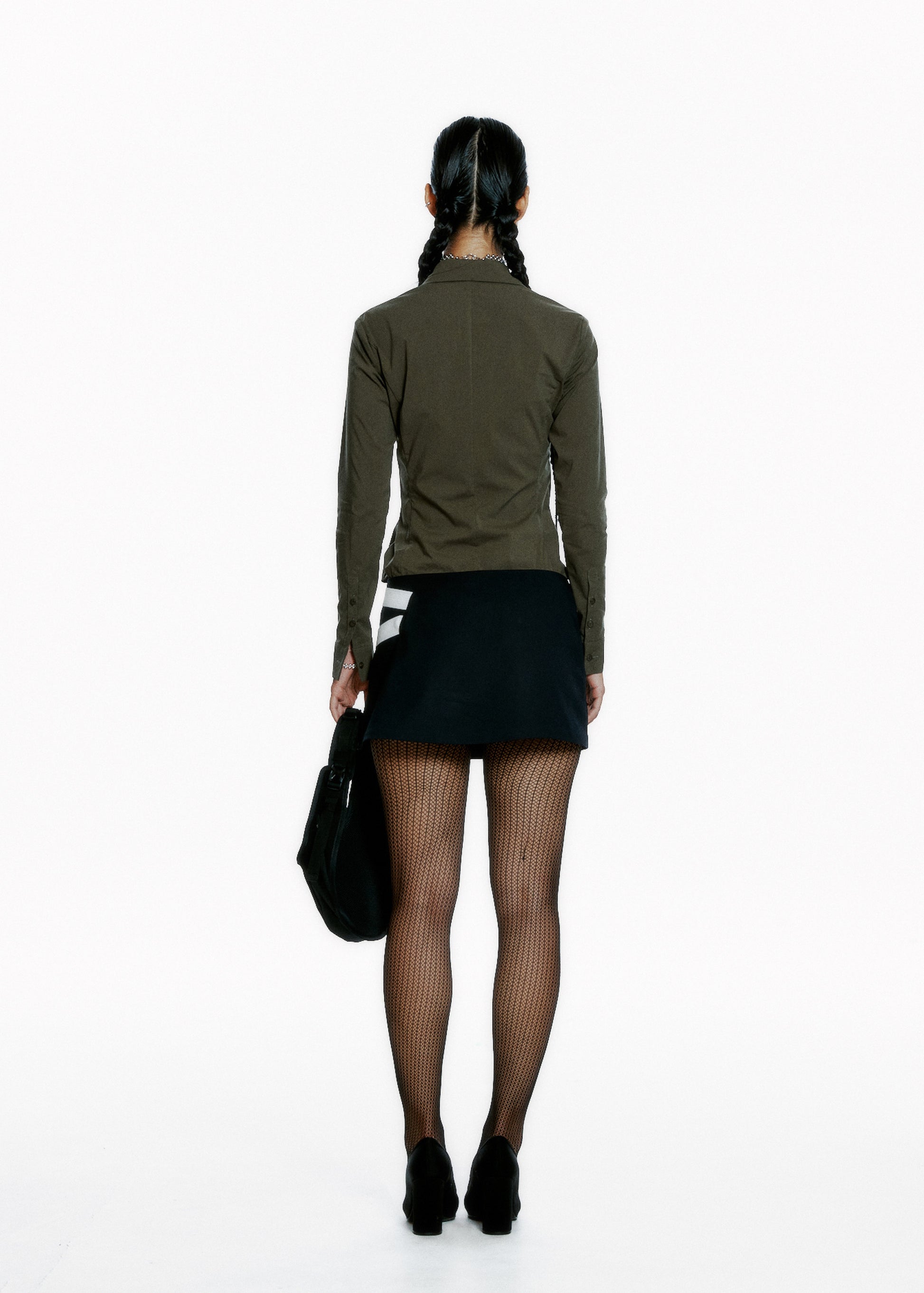 Laser cut-punching detail throughout, adjustable wrap mini skirt with elastic band