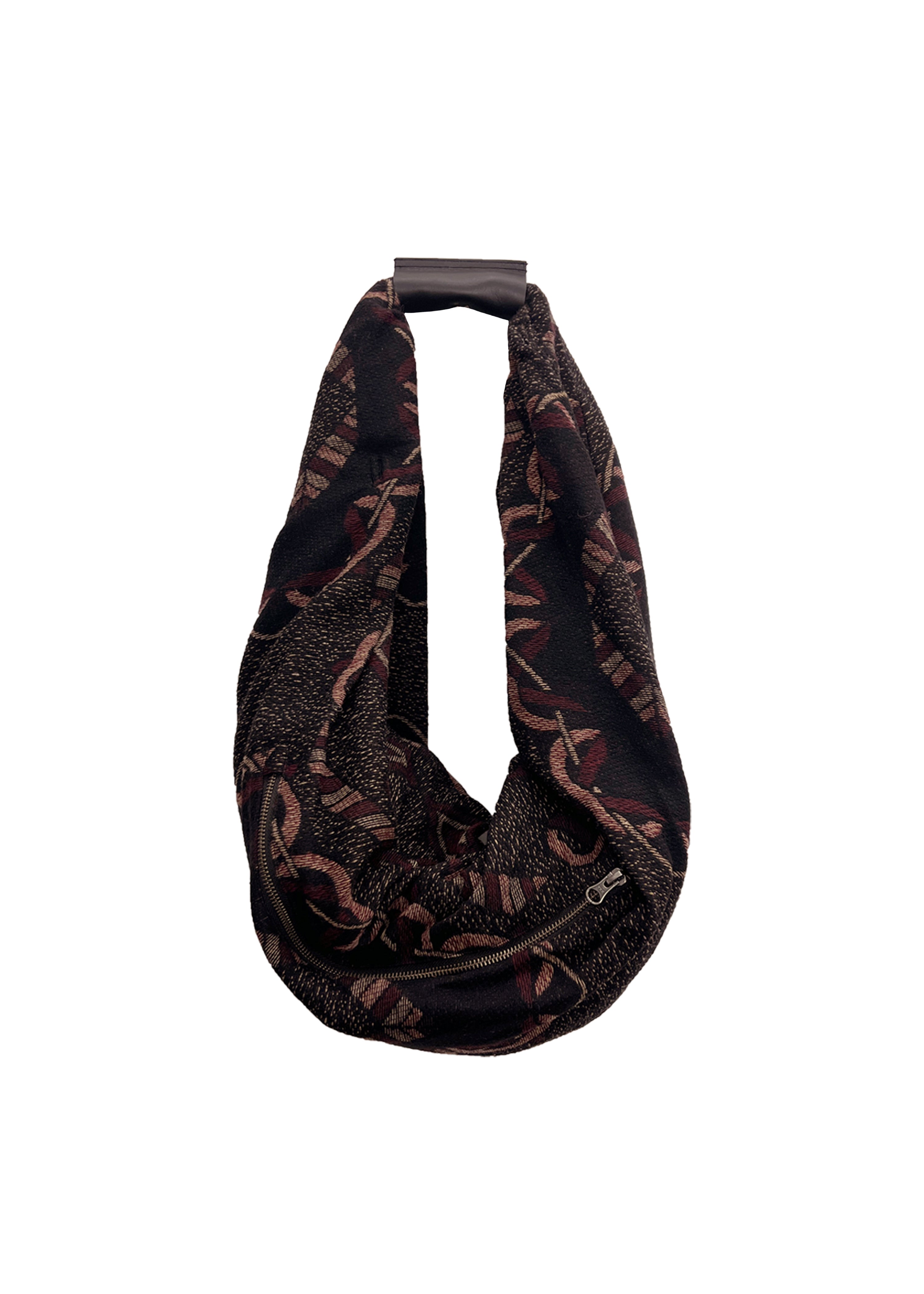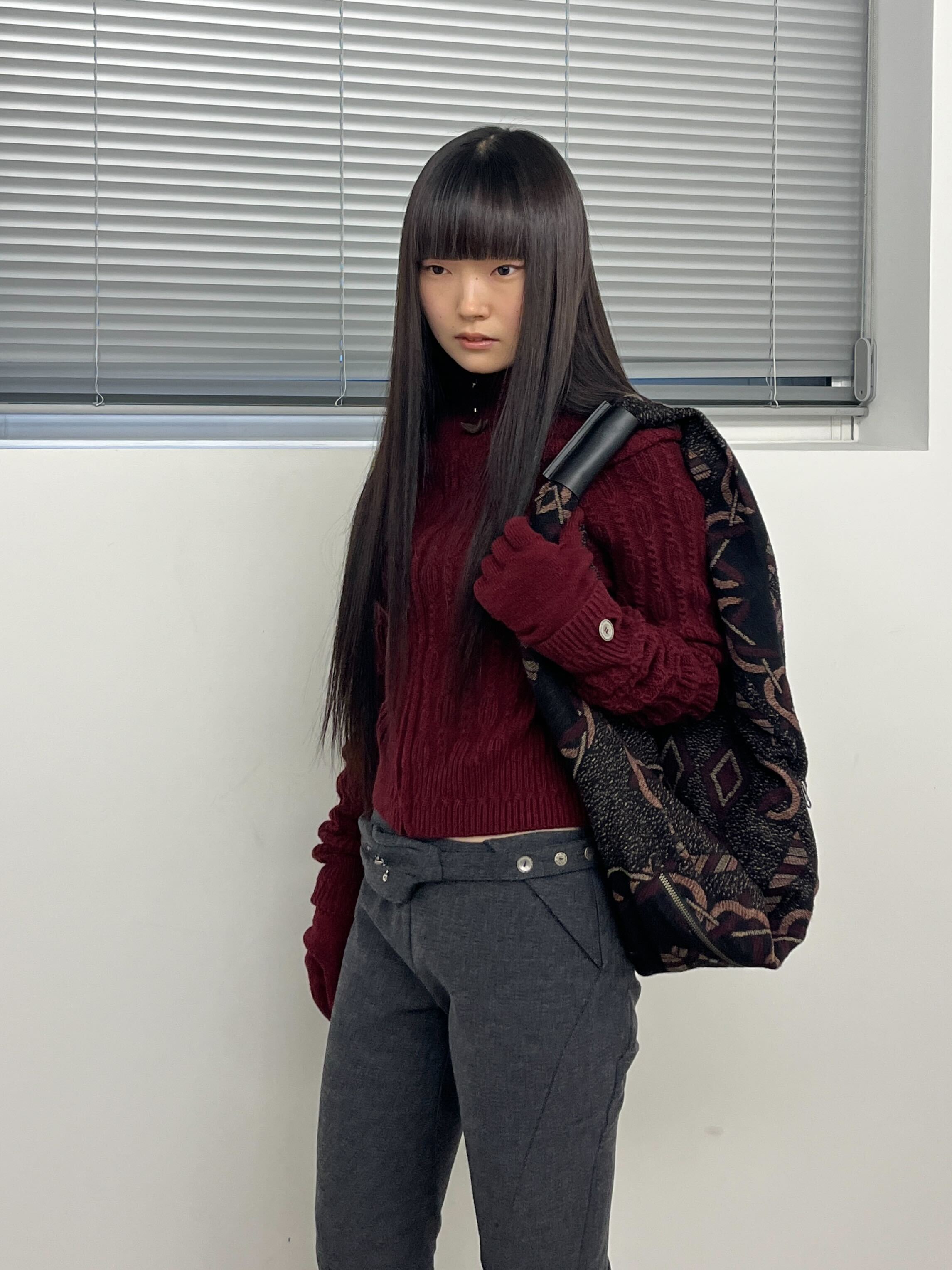 Crafted from a wool-blend fabric with a soft yet structured feel, can be worn as a shoulder bag or crossbody, features a logo-embossed handle.